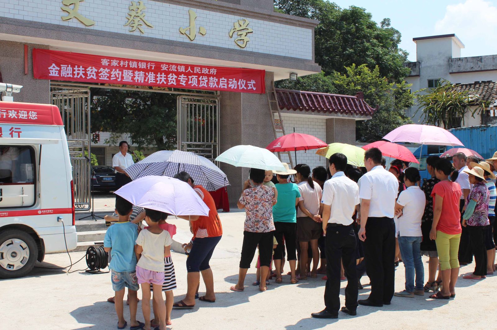7月29日,我市首笔精准扶贫专项贷款签约发放仪式日前在安流镇文葵村举行,客家村镇银行现场为安流镇授信2000万元精准扶贫专项贷款额度,并为文葵村3户建档立卡贫困户各发放5万元免抵押、免担保、低利率的精准扶贫专项贷款。客家村镇银行董事长李东强、安流镇党委书记刘现松、五华县扶贫局局长朱建芳出席仪式。 .jpg)
