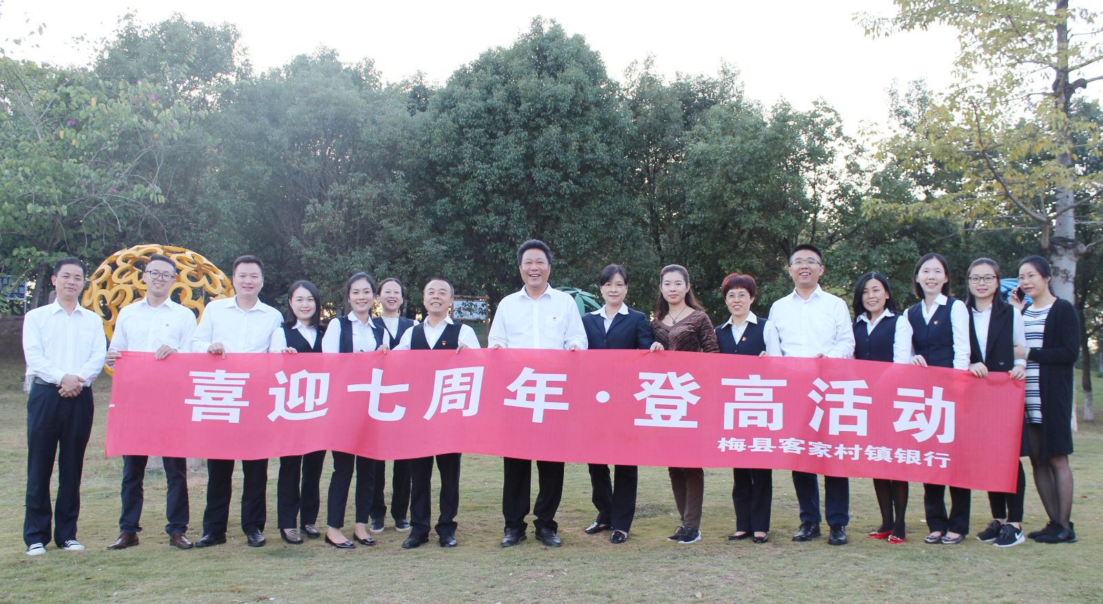 11月1日下午,为庆祝客家村镇银行成立七周年,弘扬“快乐工作,健康生活”的理念,我行组织员工到梅县区梅花山公园开展喜迎七周年·登高活动,行领导、总行机关工作人员、营业网点负责人参加了活动。