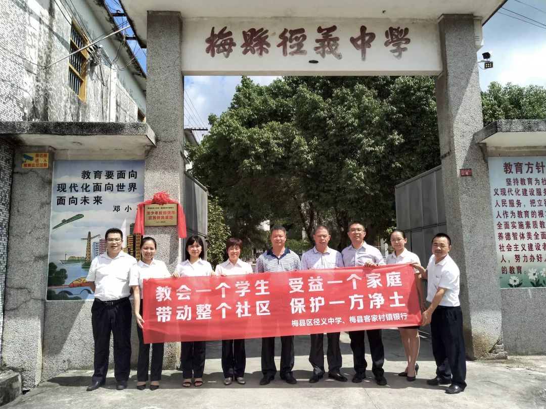 为把素质教育向纵深推进,进一步拓展较偏远山区的同学们的知识视野,增强学生辨别真假人民币的能力,9月19日上午,客家村镇银行在梅县区径义中学举行“青少年反假货币宣传教育基地”挂牌仪式,径义中学黄小清校长、客家村镇银行何玲副行长出席仪式。