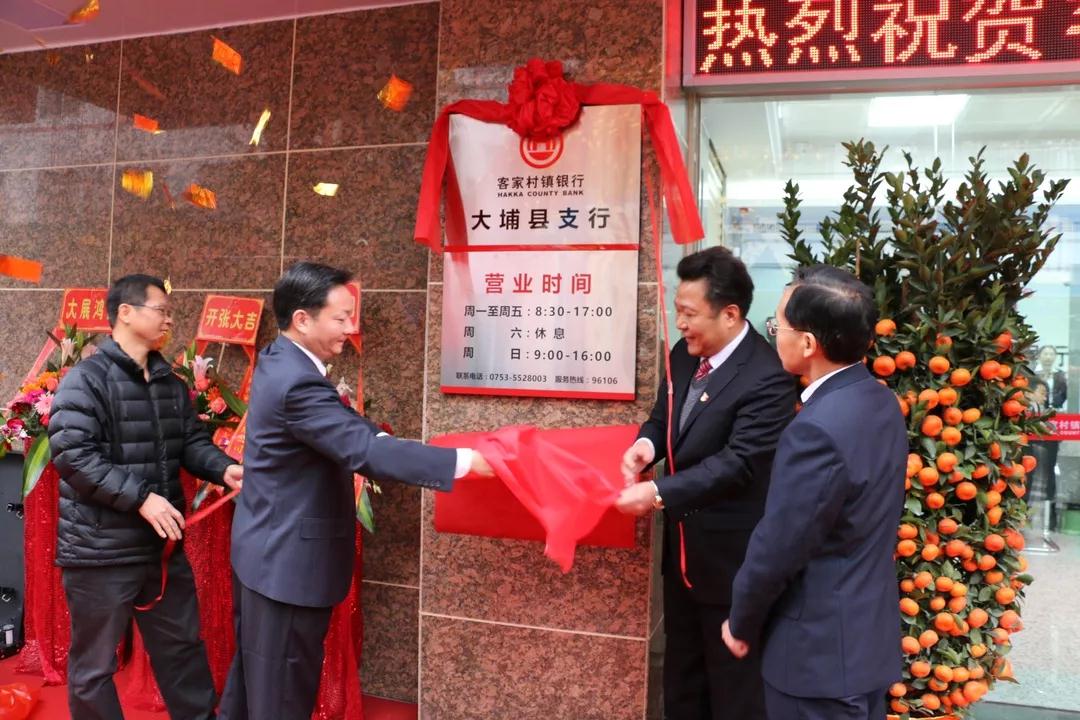 1月17日,客家村镇银行大埔县支行隆重举行开业仪式,大埔县委书记朱汉东、大埔县委常委、常务副县长郑尚森、梅州市金融局副局长张昌亮、中国人民银行梅州市中心支行副行长温举鸿、客家村镇银行董事长李东强等参加活动,并为客家村镇银行大埔县支行开业揭幕。至此,梅州成为广东省首家村镇银行县域全覆盖的地级市。
