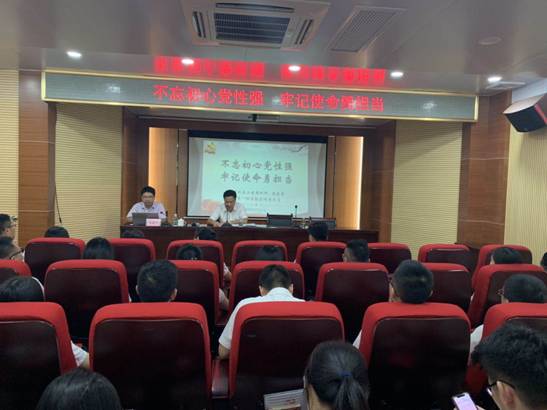 为纪念中国共产党建党98周年,深入学习贯彻落实党的十九大会议精神,增强党委凝聚力和战斗力,提高党员的理论修养,2019年7月1日,我行党委特邀中共梅州市直属机关工作委员会组织科副科长杨建学前来授课。