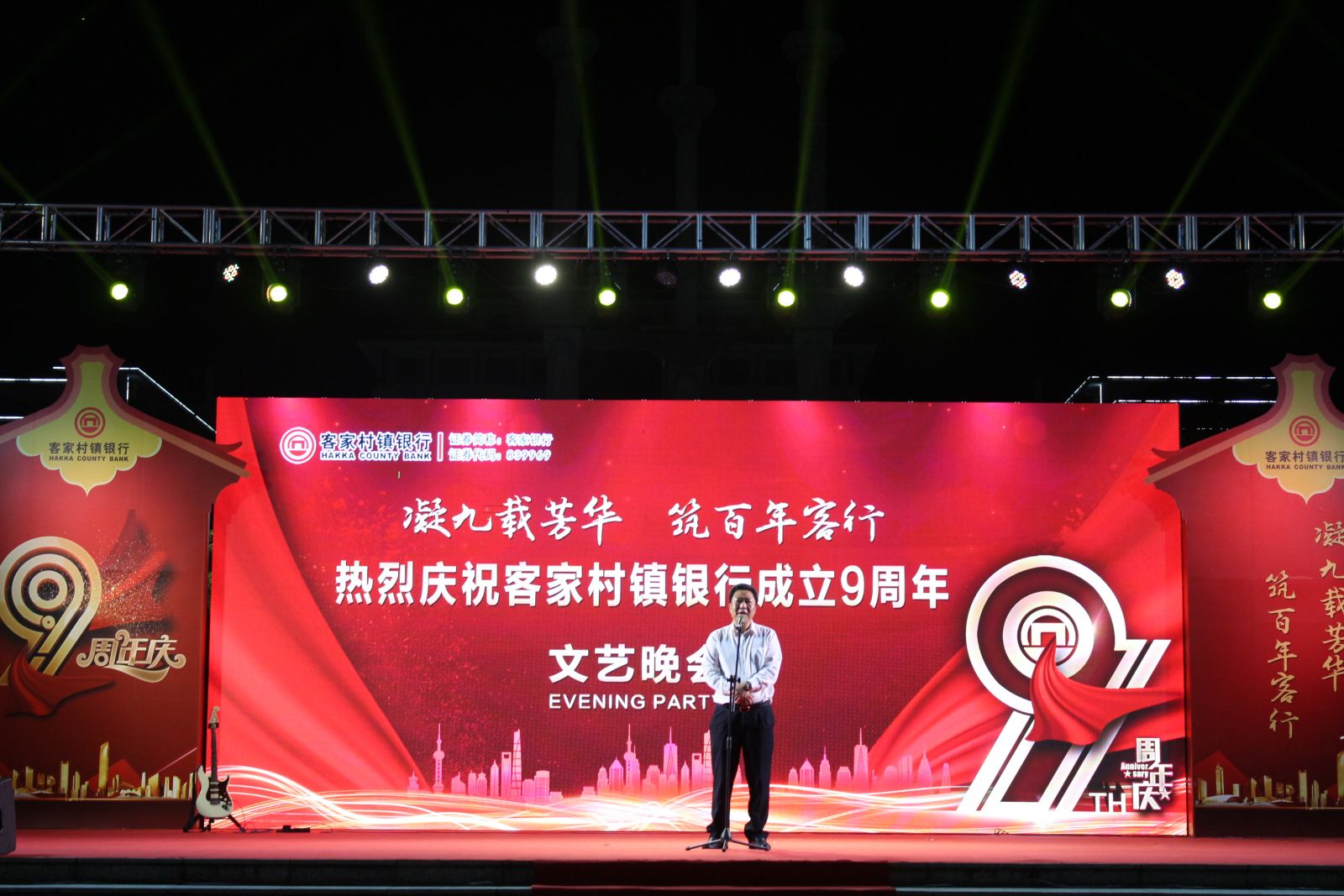 11月1日晚,梅县客家村镇银行“凝九载芳华,筑百年客行”九周年行庆文艺晚会在梅江区院士广场举行。客家村镇银行党委书记、董事长李东强,党委副书记、行长潘志峰等干部职工出席了本次晚会,共贺客家村镇银行成立九周年华诞。