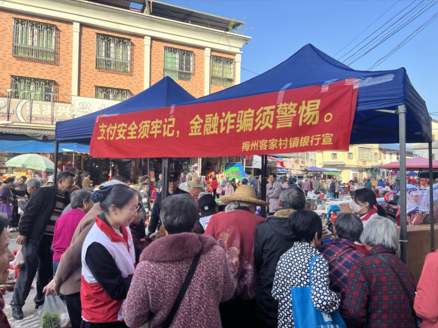 随着网络科技的飞速发展,金融诈骗手段日益翻新,给广大民众的财产安全带来了严重威胁。为切实增强公众对金融诈骗的防范意识,最大限度地减少经济损失,近日,梅州客家村镇银行隆文分理处联合梅州市梅县区隆文镇人民政府、隆文派出所,在隆文镇圩镇共同开展了一场声势浩大的反诈宣传活动,旨在构筑起一道坚实的防线,守护好每一位市民的“钱袋子”。